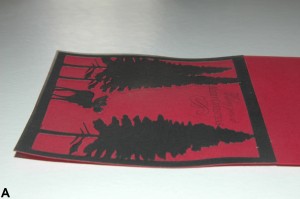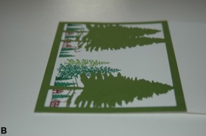 For a long time I had wish there was some kind of gel glue that did not warp my projects and Elmer’s fulfilled my wish. Image A below displays the classic warping when I used regular gel glue; notice the edge of the card has the tidal waves effect as the glue dries.